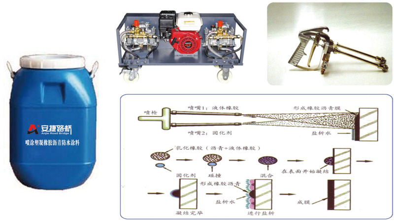 噴涂速凝橡膠瀝青防水涂料是采用特殊工藝將超細懸浮微乳型陰離子改性乳化瀝青和合成高分子聚合物( A組份)與特種成膜劑( B組份)混合后生成的高彈性防水、防腐、防滲、防護涂膜的防水涂料。經(jīng)現(xiàn)場專用設(shè)備噴涂瞬間形成致密、連續(xù)、完整的并具有極高伸長率、超強彈性、優(yōu)異耐久性的,真正實現(xiàn)"皮膚式”防水的防水涂膜,是一種施工簡便快捷、能夠系統(tǒng)解決防水問題的節(jié)能減排產(chǎn)品。該產(chǎn)品具備的優(yōu)異性能與科學(xué)施工工藝的有效結(jié)合,大限度地使材料性能和工程質(zhì)量得以完美體現(xiàn)和保障,積極地推進了新技術(shù)、新工藝、新材料、新設(shè)備的使用。